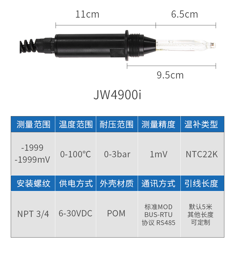 JW4900i pH电极通过重新考虑电极、最终用户和过程控制系统工之间的通讯,将变送器整合到电极的内部,实现了电极和变送器一体化,传统的变送器功能被内置在电极内的微处理器所取代,该电极可以直接输出RS485信号,其前置的玻璃电极不同于市面上常规的电极,只适用于地表水等环保环境水体,其在复杂的工业现场也可进行精准地测量。