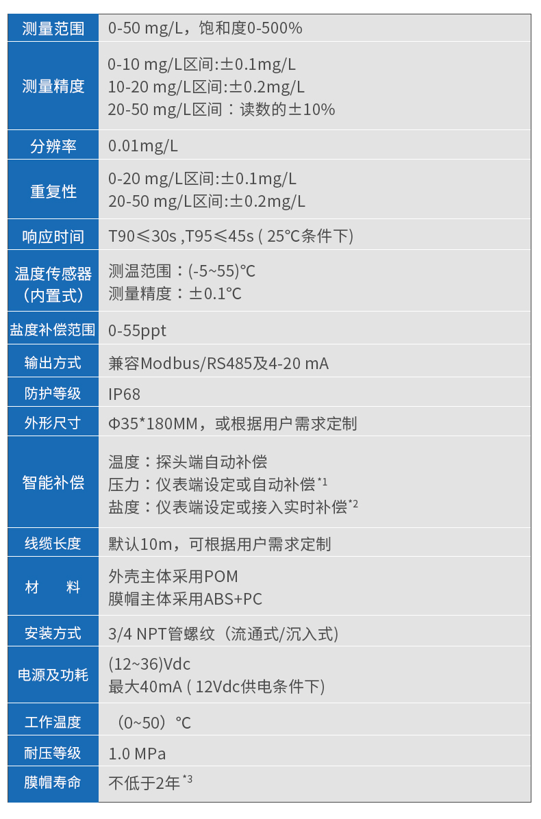 性能卓越的荧光法溶氧电极,适用于生活污水、工业废水、养殖、市政、地表水