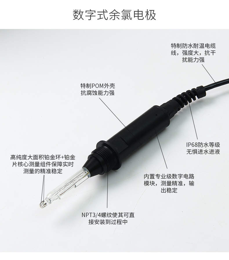 真正的工业级数字余氯电极,适用于自来水、二次供水、游泳池、加药设备配套、工业过程