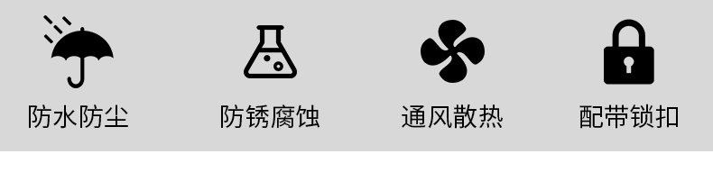 防水防尘、防锈腐蚀、通风散热、配带锁扣
